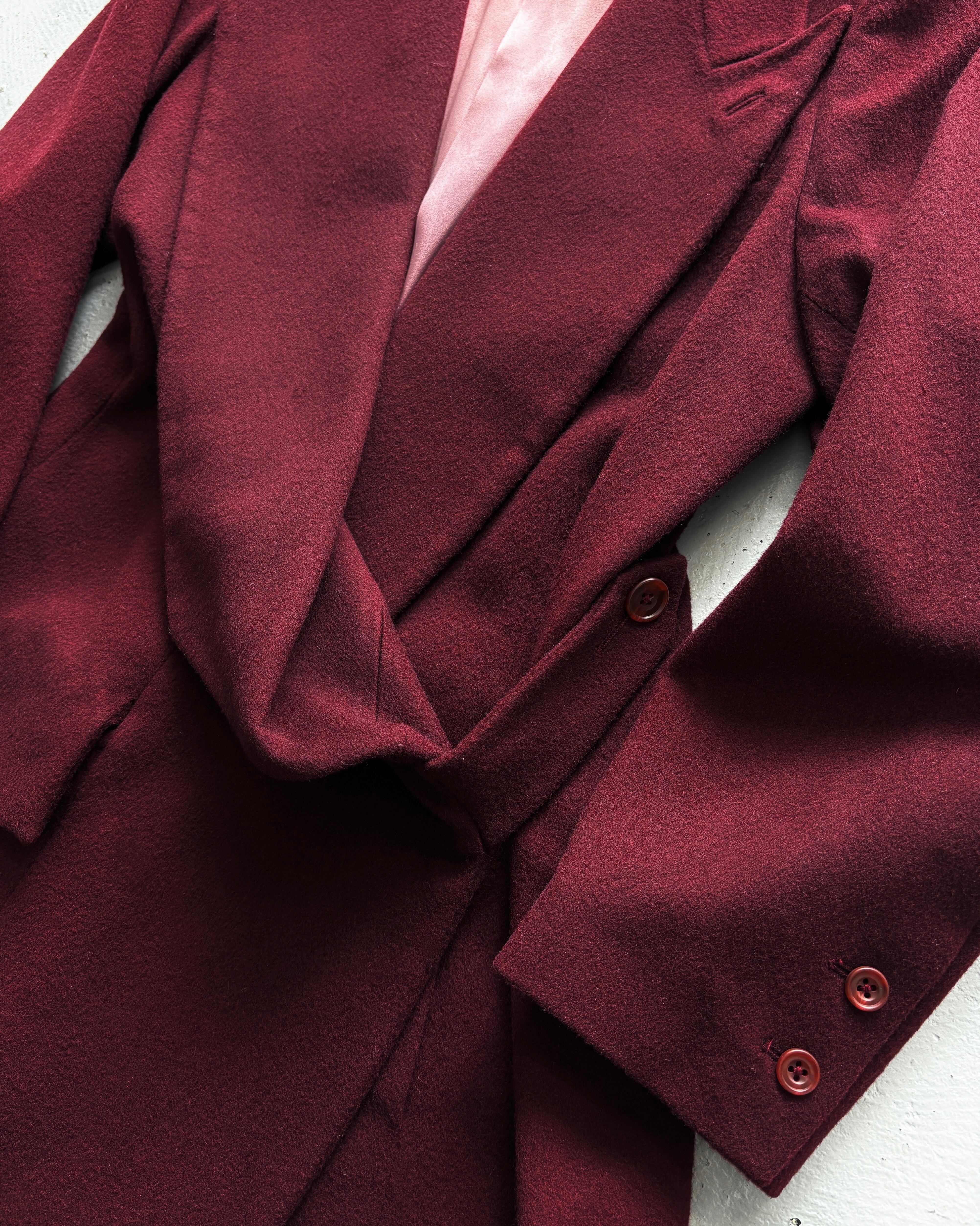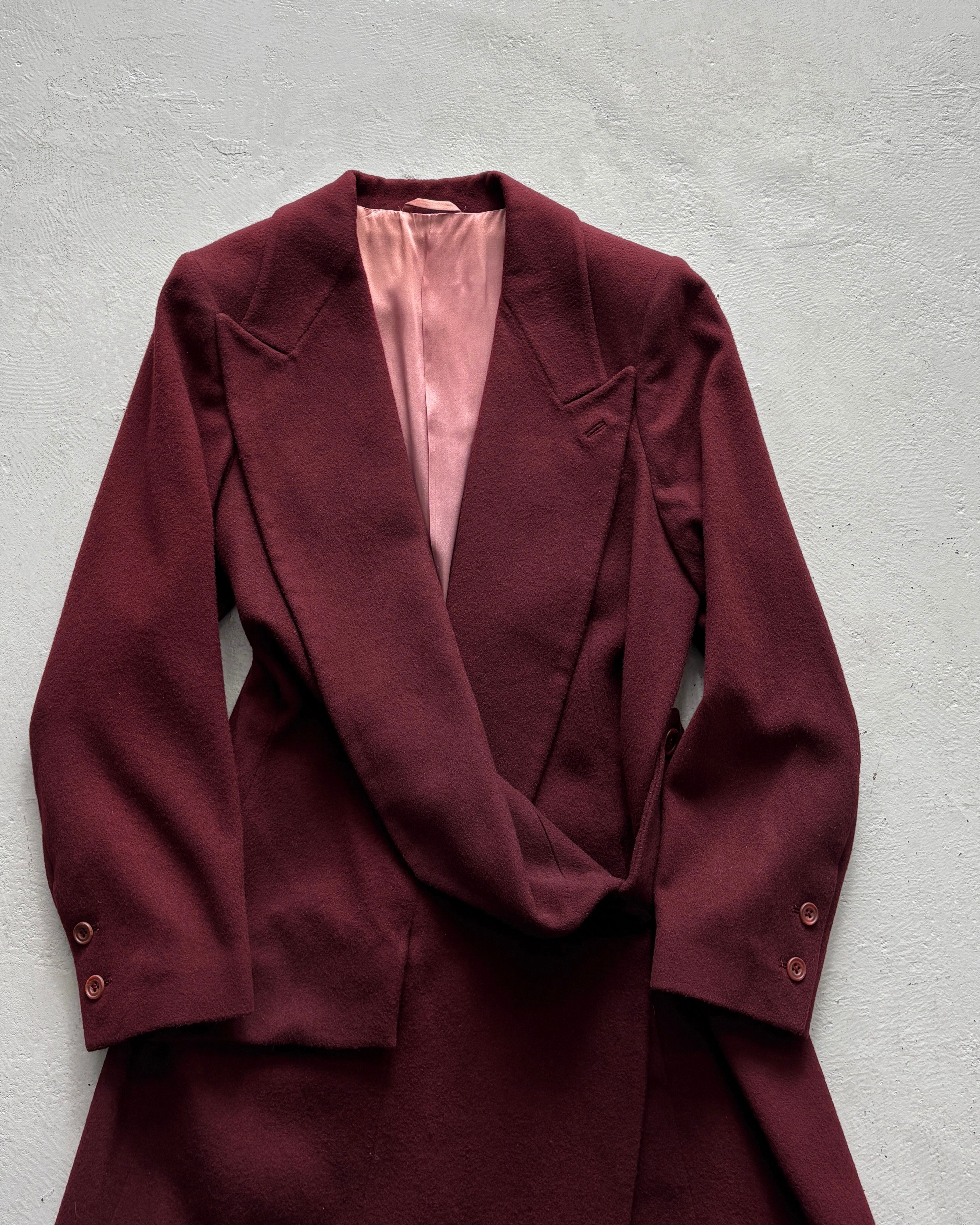 1989 John Galiano - aubergine wool crêpe coat-dress