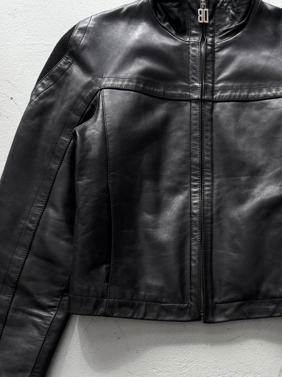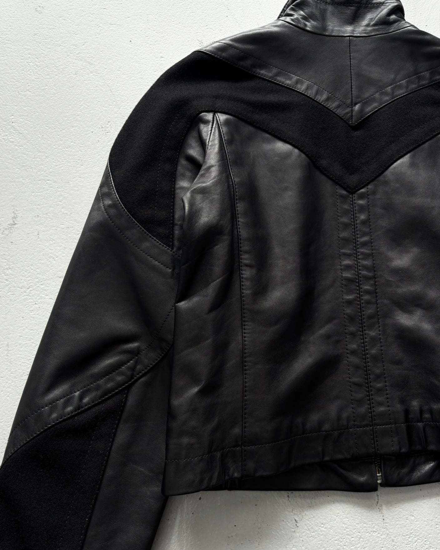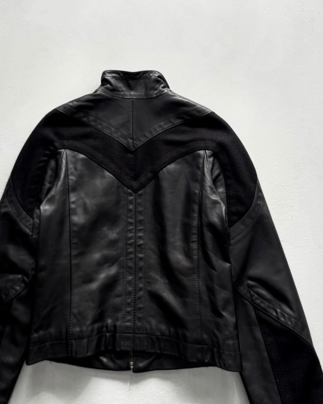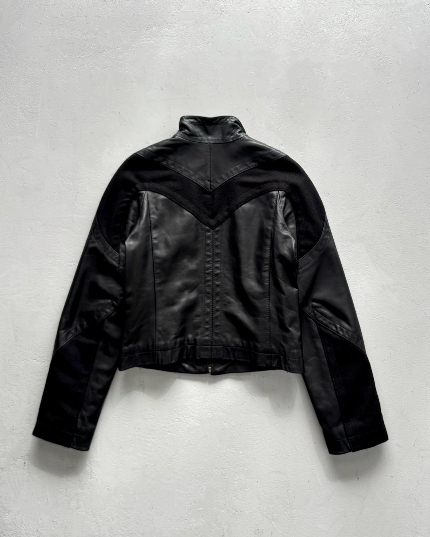 F/W2005 Dirk Bikkembirgs - panel-constructed motorcycle leather jacket