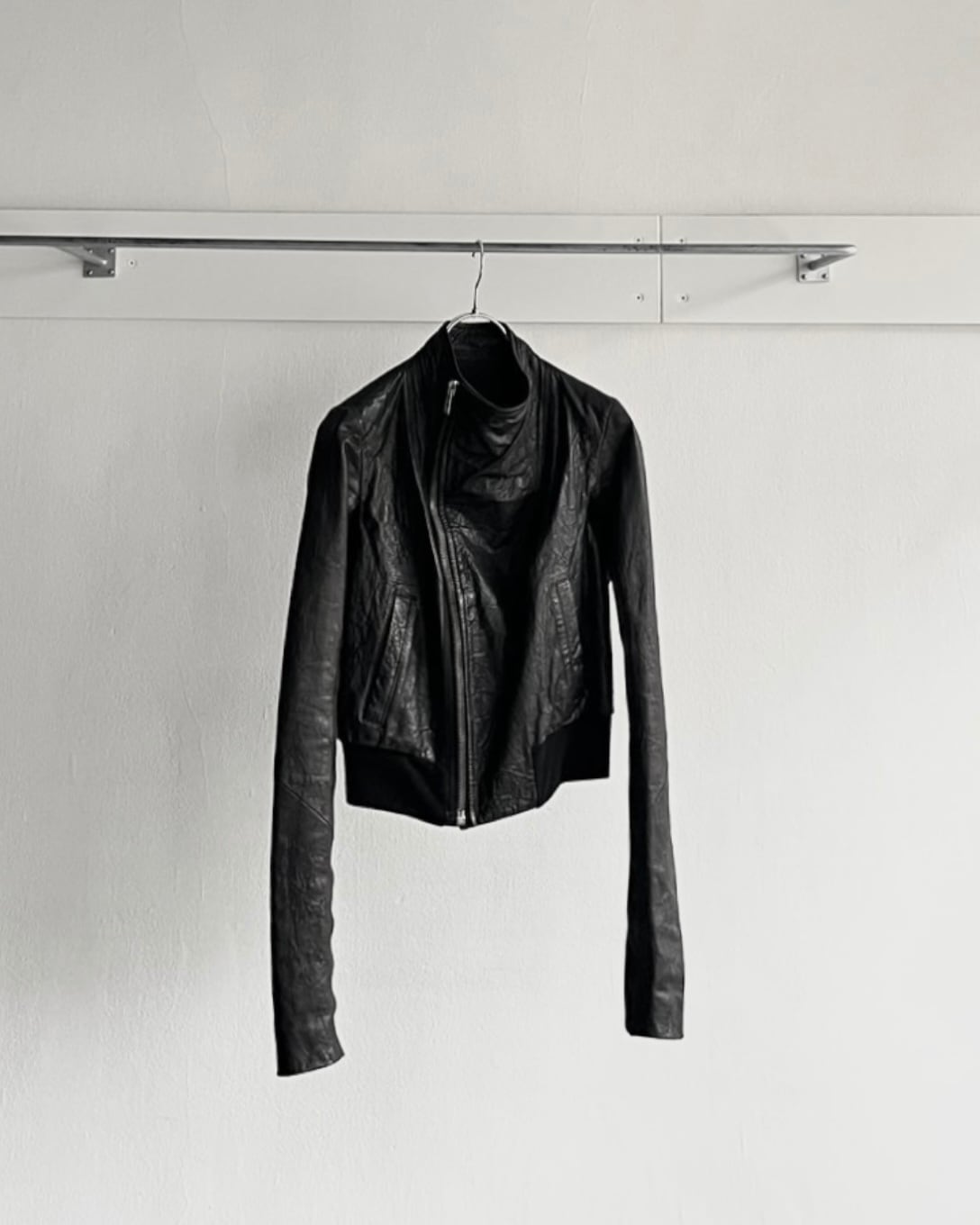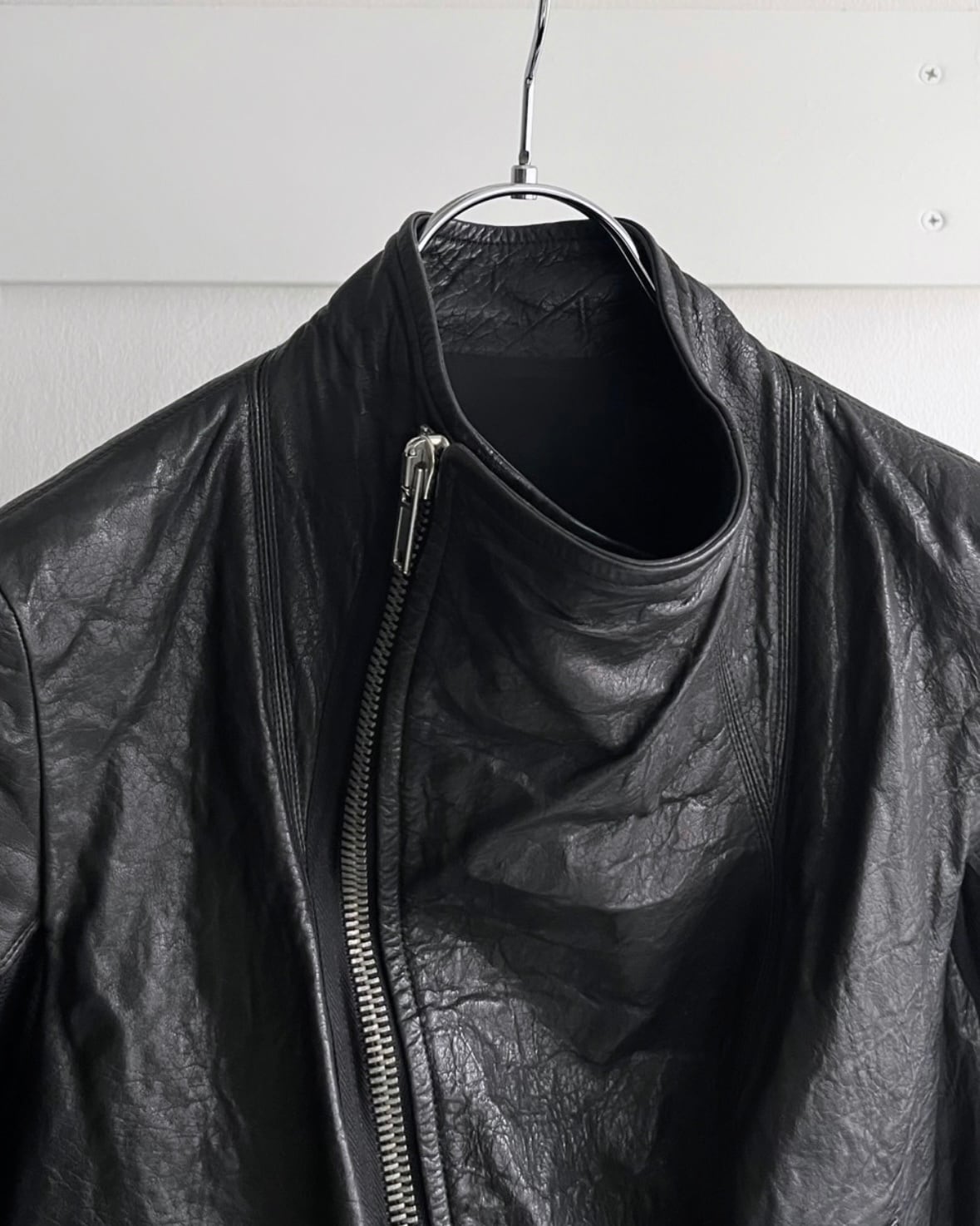 2000s Rick Owens - cowl neck leather jacket