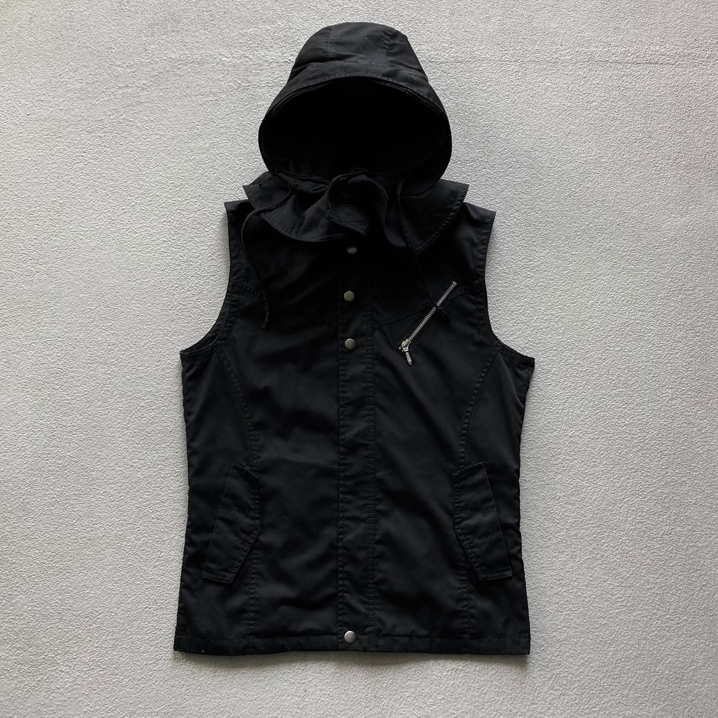 デザイン性が強いだけではなくダブルジップ、フラップポケット、フードはボタンで取り外し可能な機能性にも優れた1着です。