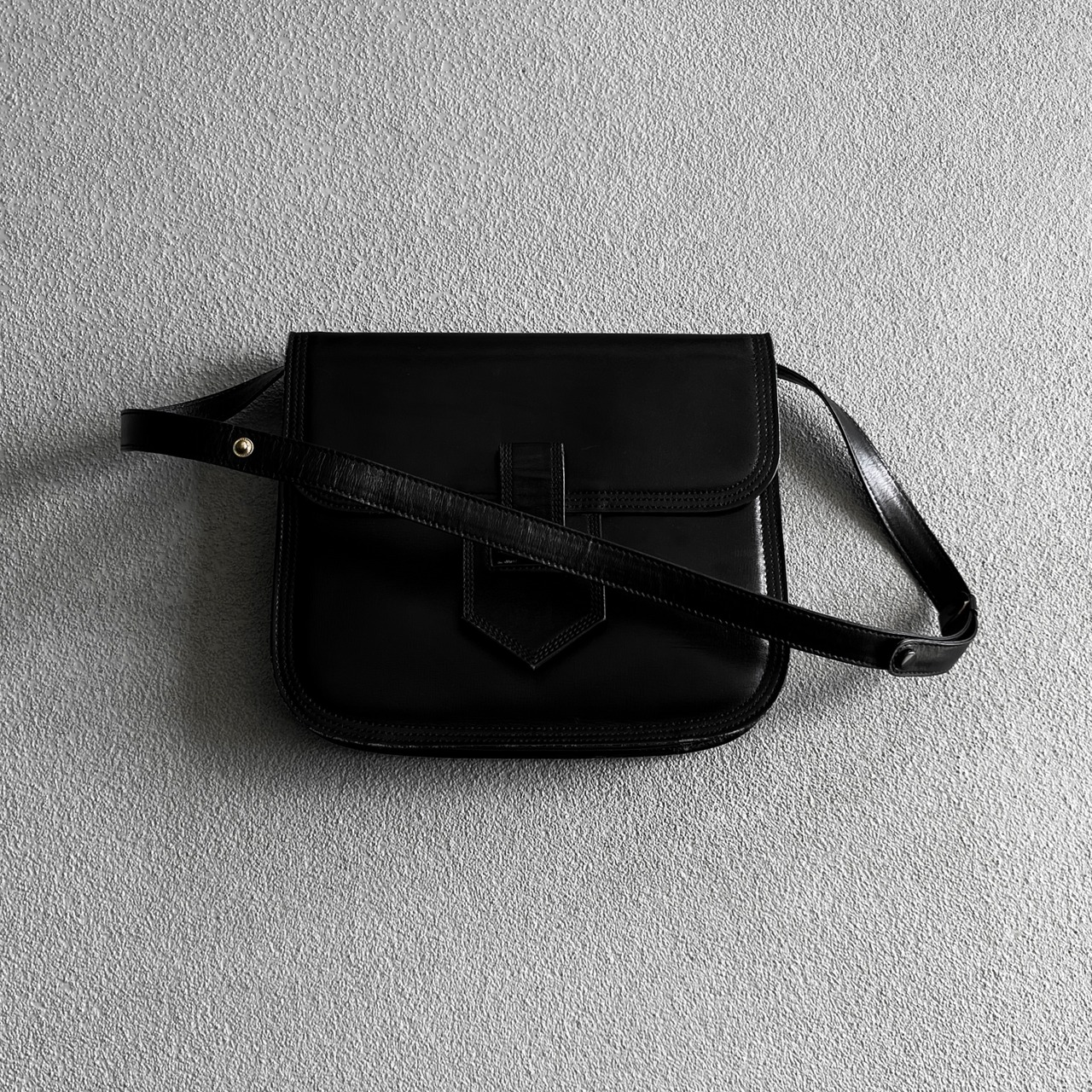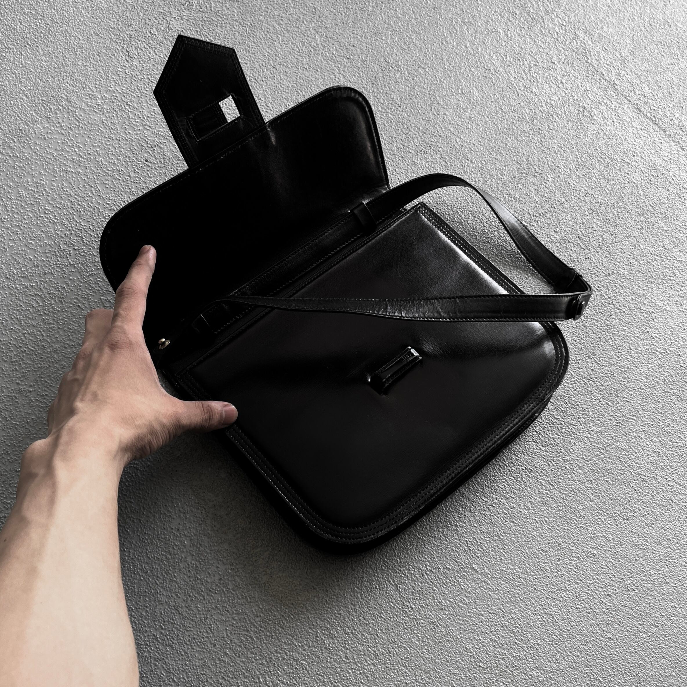 ボタンスナップで止めていただき、ハンドとショルダー2wayで使用できるレザーバッグ。