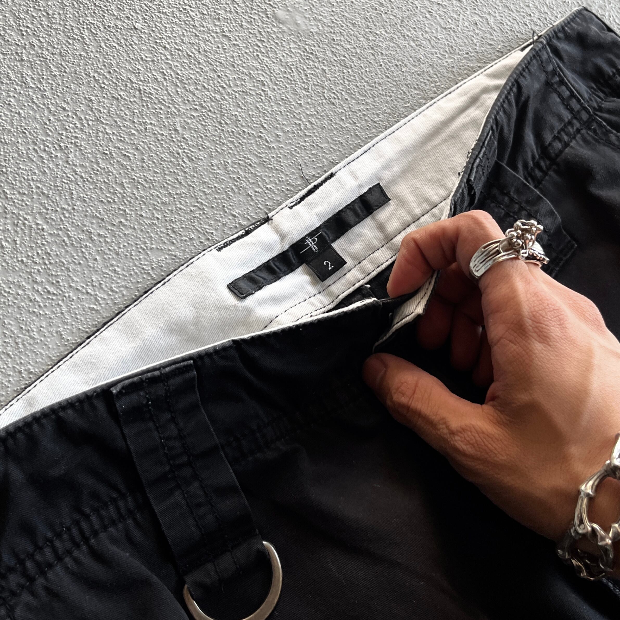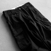 ベルトループ付近にはリングがつきお好みでスカーフなどを通していただける大きさ。腰元のアジャスターベルト、サイドポケット、ニータックとミリタリーパンツとしての機能的且つ現代的な雰囲気があるものです。