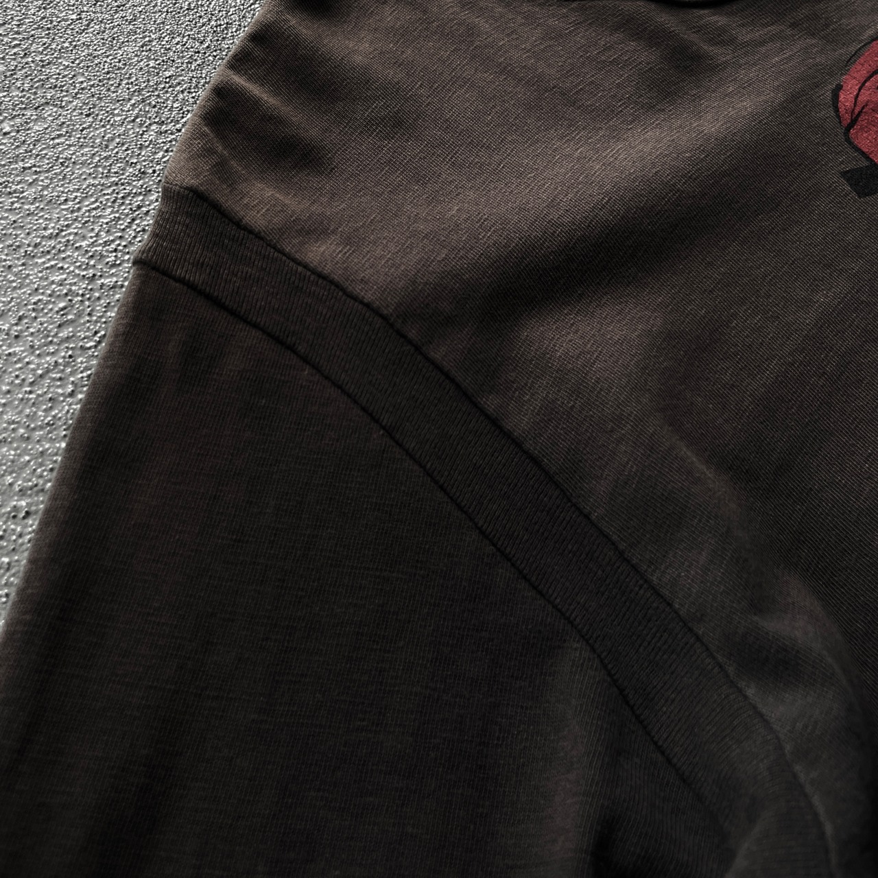洗いがった燻んだ茶色に自然に綻んだ袖ぐり、肘部はパッチワークのように切り替えられています。