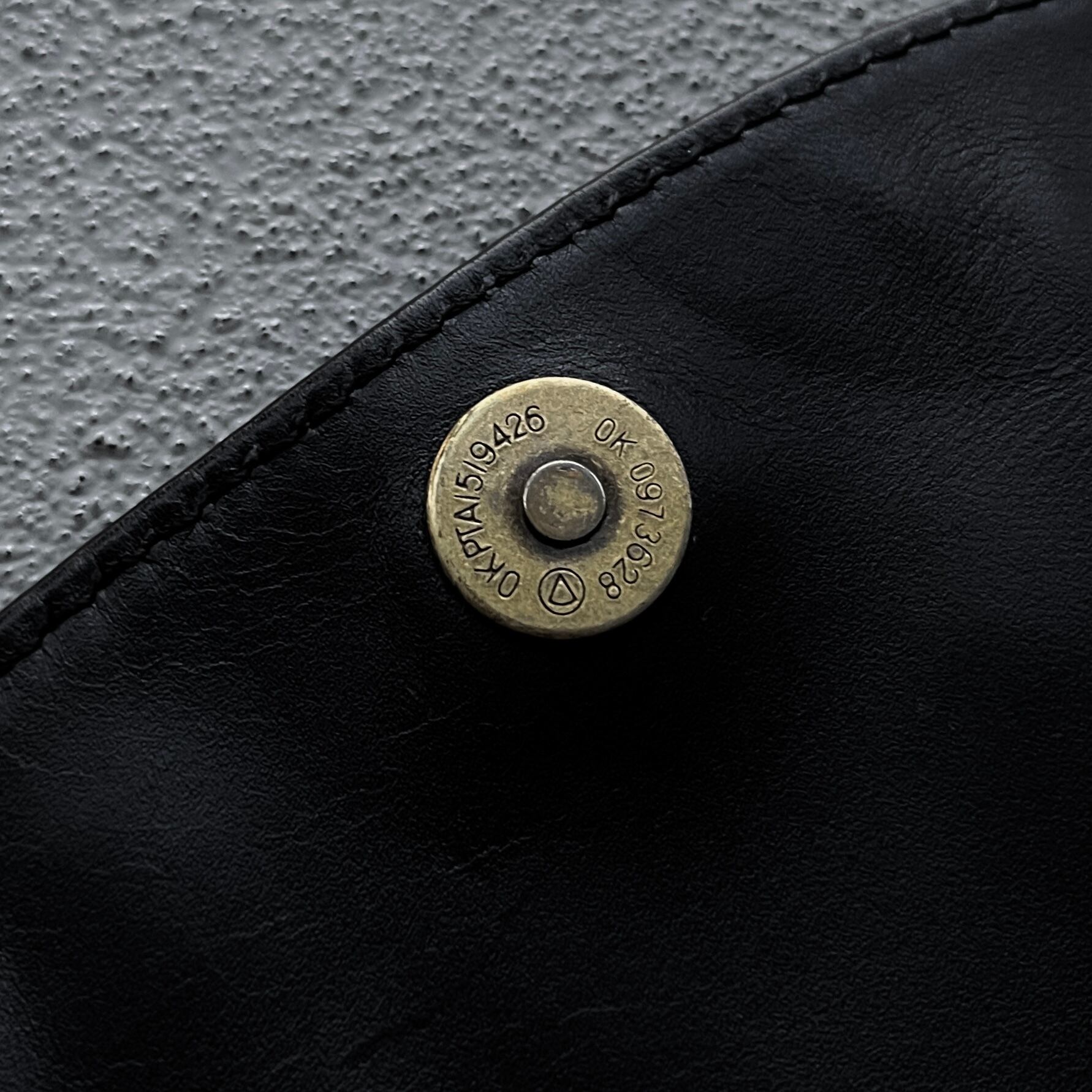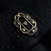 フラップ部分パンチングデザインによって民族調に丁寧に仕上げられその上からは金具が取りつけられてられています。
