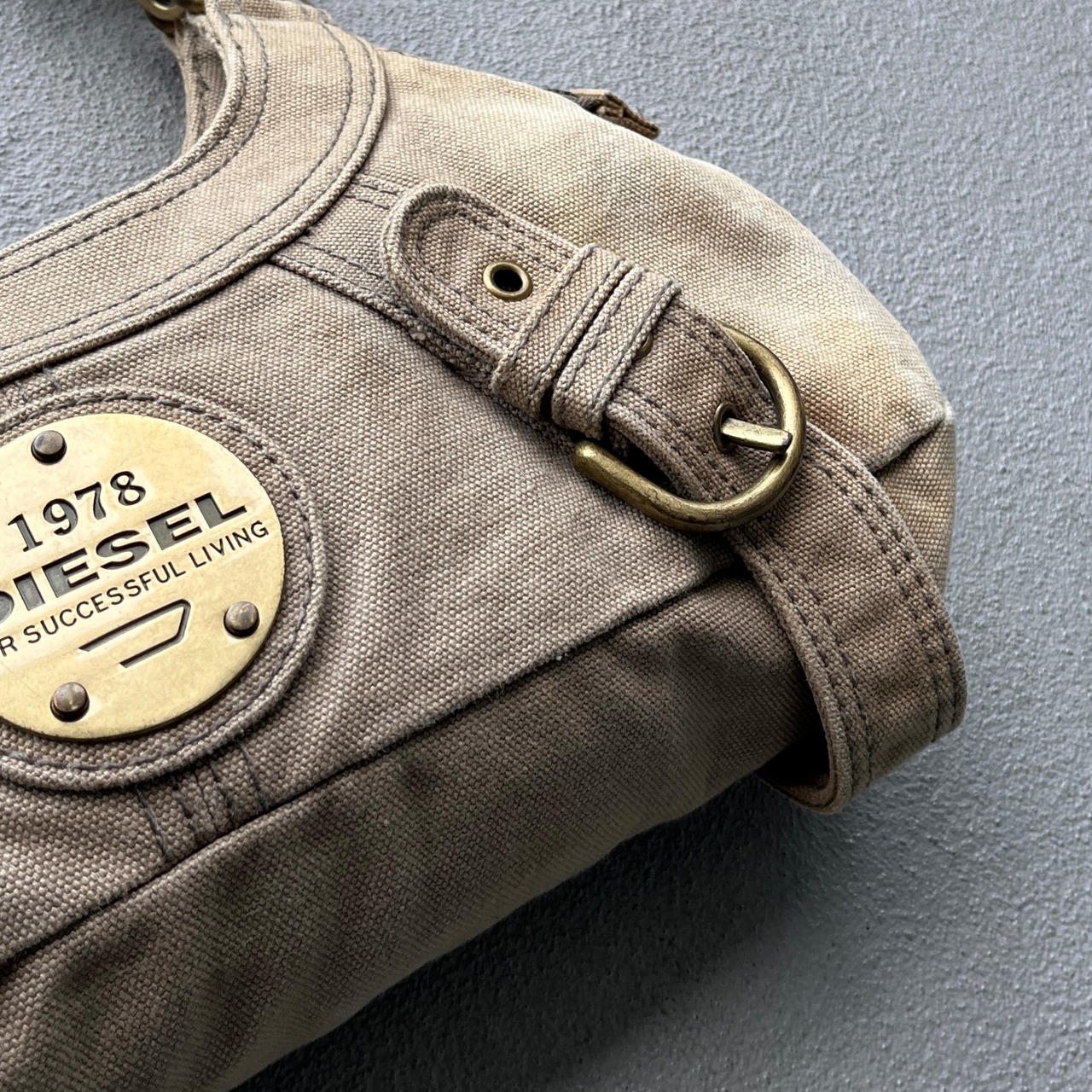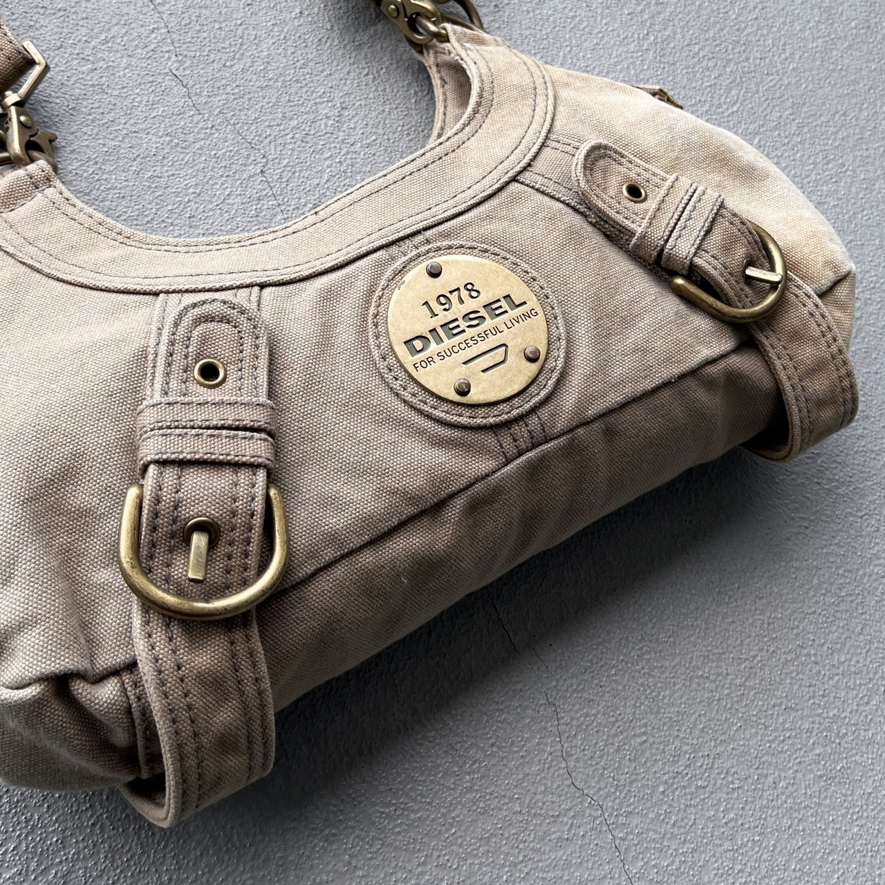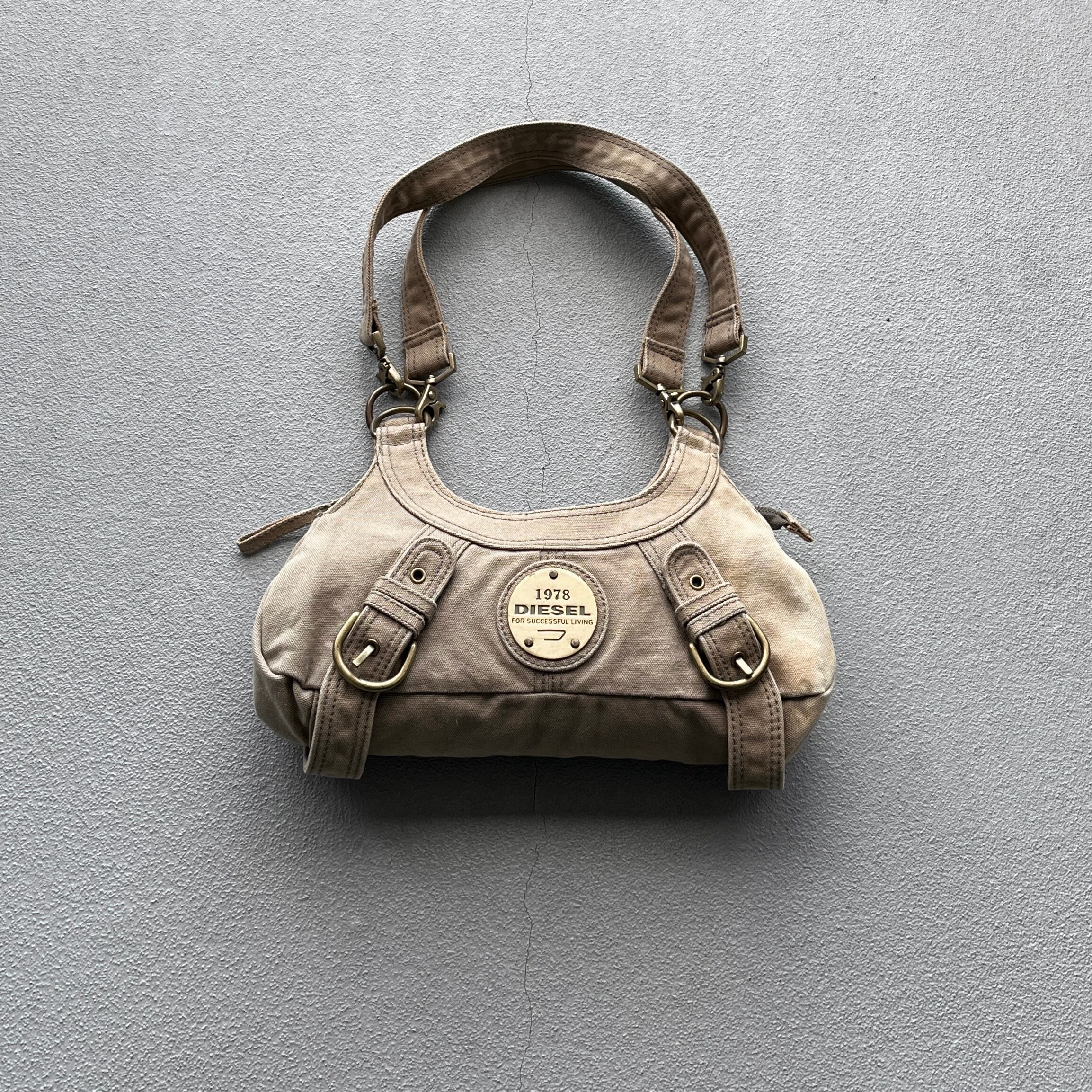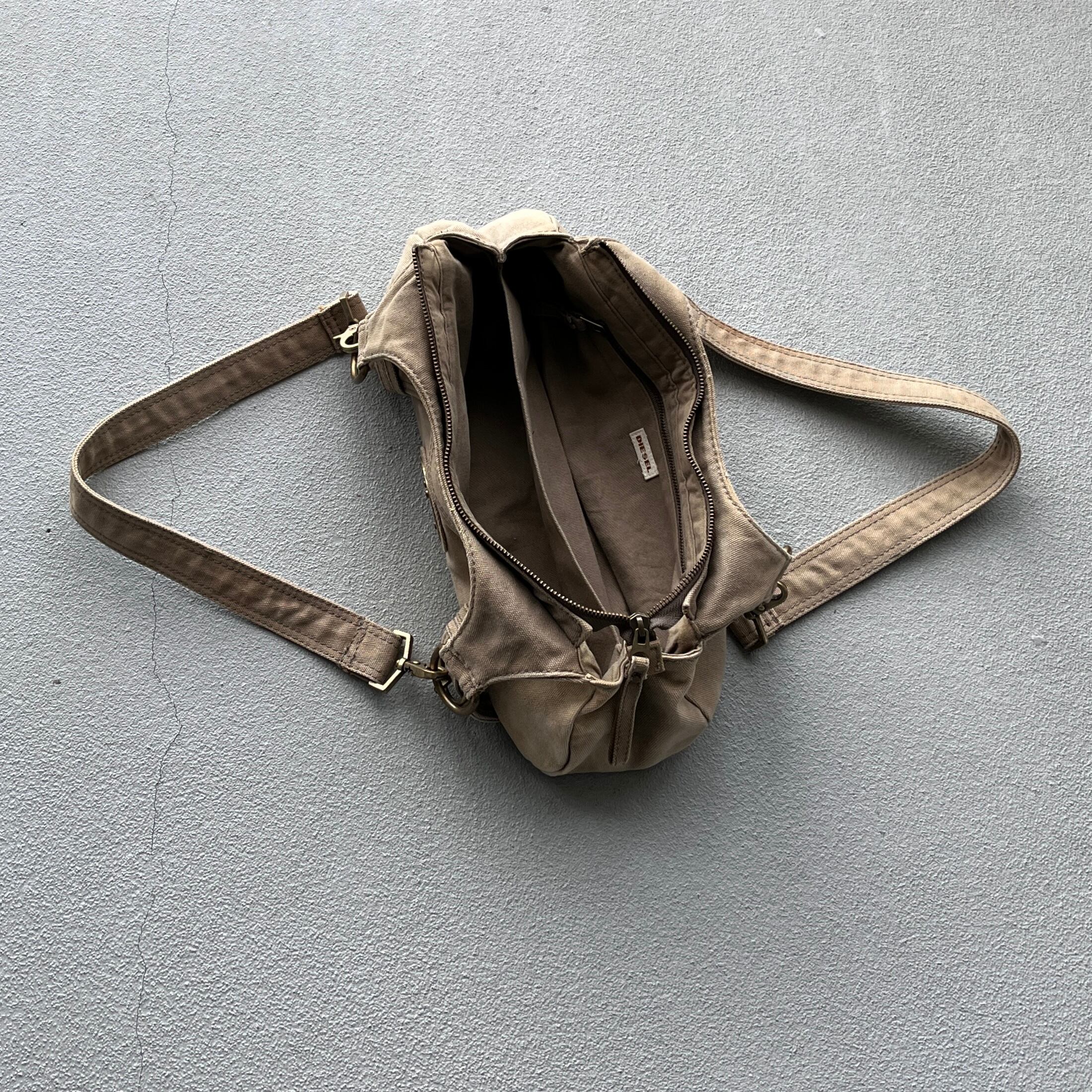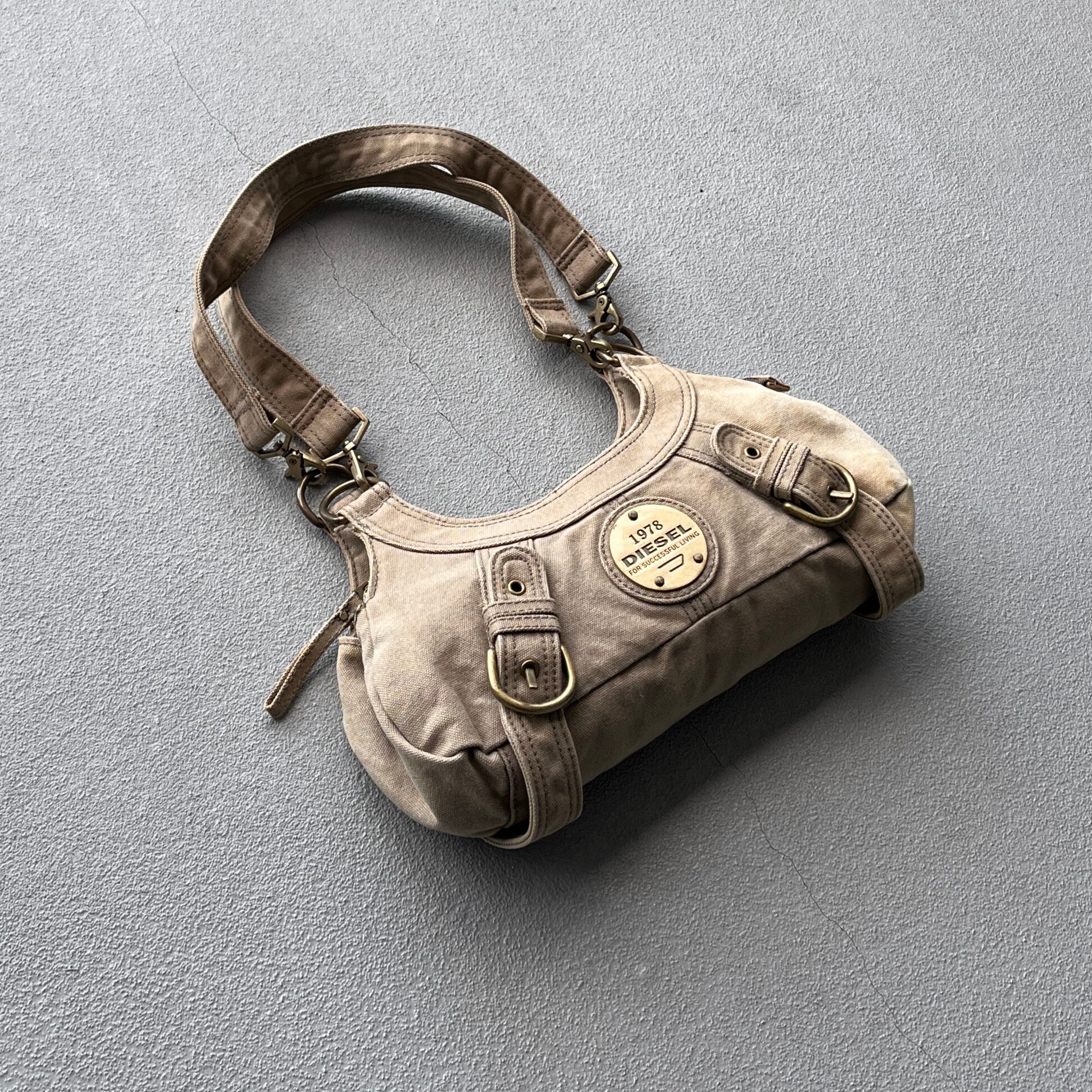 eary 2000s diesel metal plate & bondage design shoulder bag