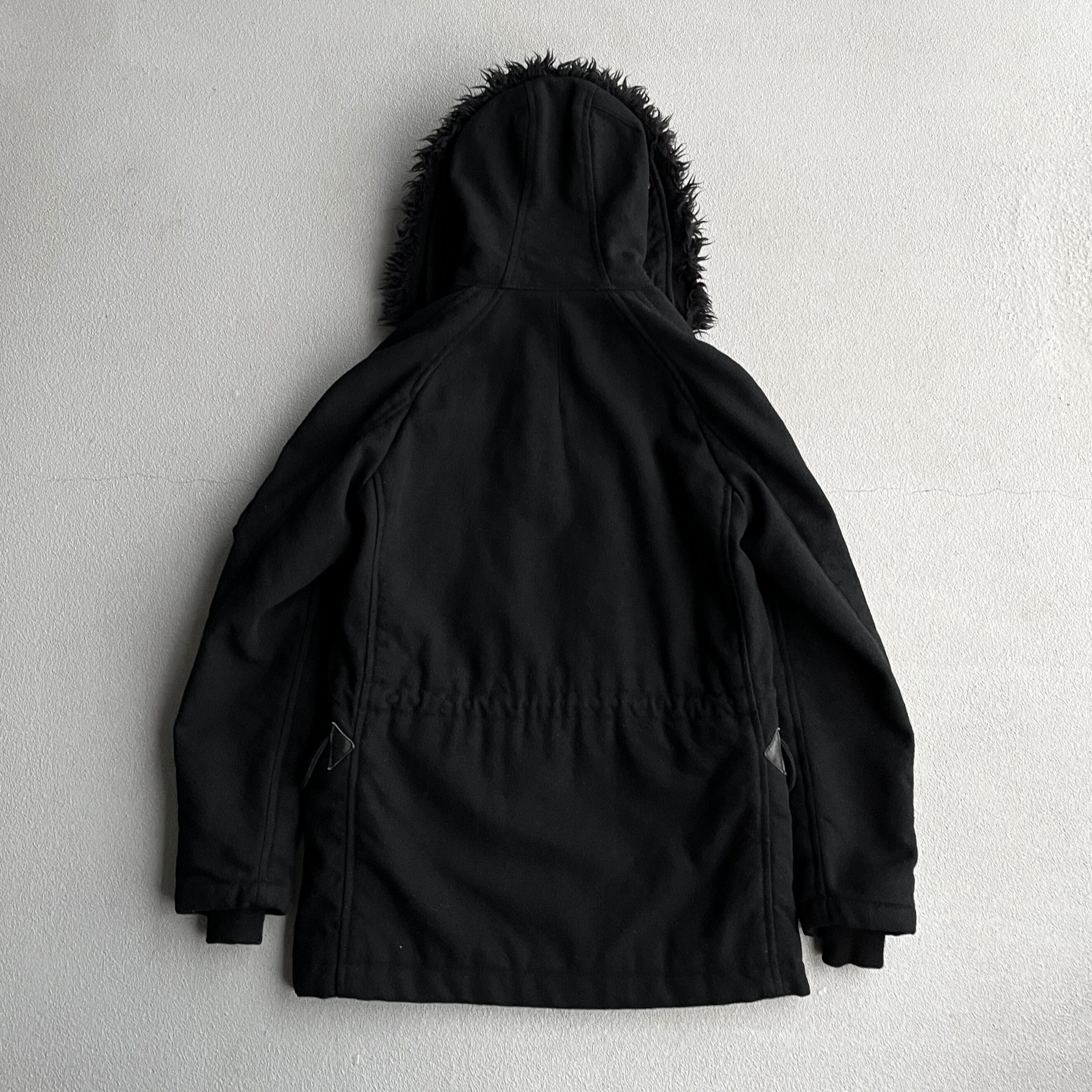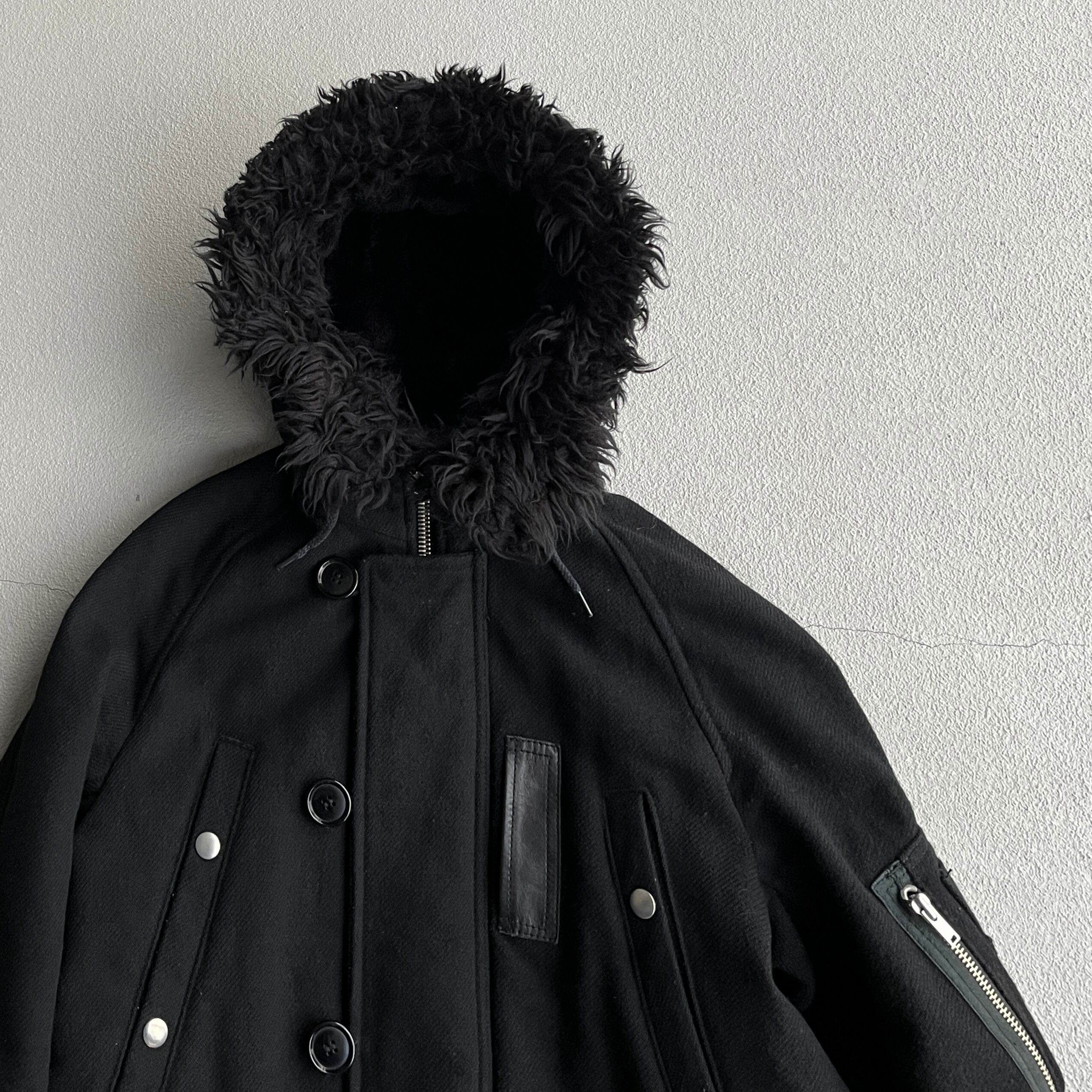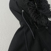 全体はややゆったりとしたサイズ感でフードは大きめに設計され、ジップ部分以外はブラックカラー。またフードの内側にはボア素材が使用され、袖にはリブがついた細部まで工夫が凝った作り。