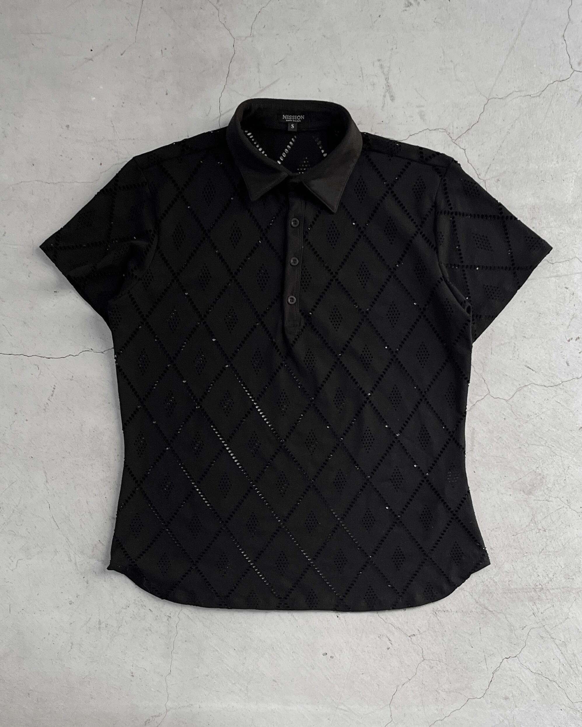 1990s Mission argyle pattern mash knit polo shirt